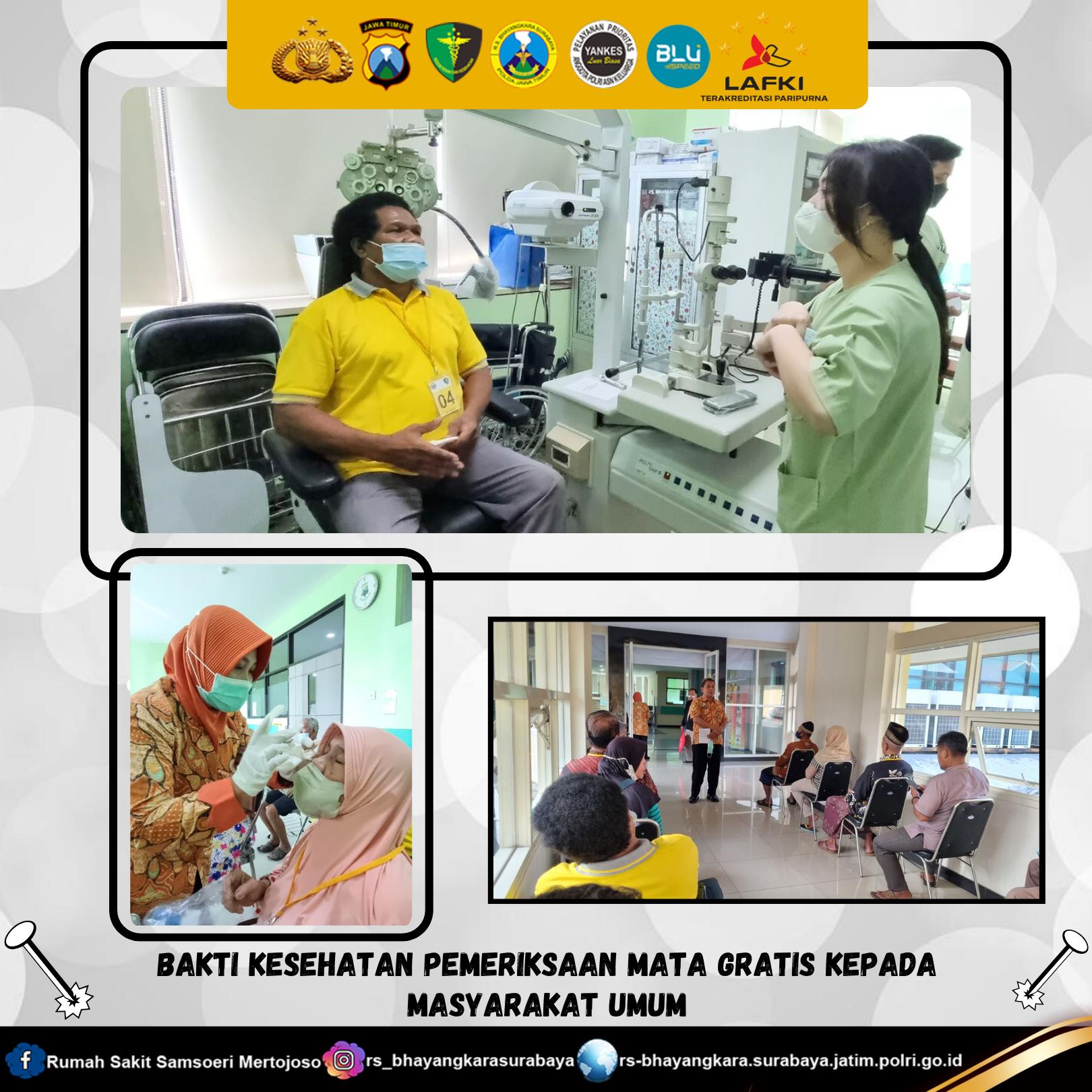 RS Bhayangkara Surabaya kembali hadir memberikan pelayanan terbaik bagi masyarakat melalui kegiatan pemeriksaan mata gratis.