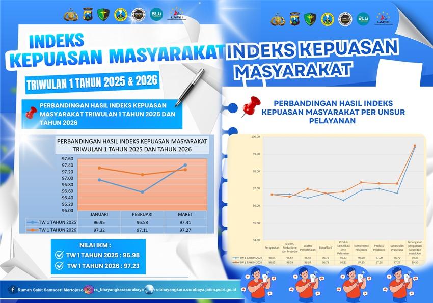 INDEKS KEPUASAN MASYARAKAT (IKM) TRIWULAN 1 TAHUN 2025 & 2026 DI RS BHAYANGKARA SURABAYA