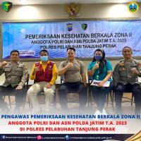 Kegiatan Tim Yanmeddokpol RS. Bhayangkara H.S. Samsoeri Mertojoso Surabaya melakukan Pengawasan Pemeriksaan Kesehatan Berkala Zona II Bagi Anggota Polri dan ASN Polda Jatim T.A. 2023 pada hari Senin (20/03/23) di Polres Pelabuhan Tanjung Perak Surabaya.