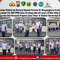 Kegiatan Pemberian Reward Kepada Personil RS. Bhayangkara Surabaya yang tergabung dalam Tim DPD PPNI Kota Surabaya Meraih Juara II Bola Volly Putra Pada Event Pekan Olahraga dan Seni Perawat Propinsi Jawa Timur di Stadion Universitas Negeri Jember. Reward ini diberikan langsung oleh Karumkit Bhayangkara Surabaya Kombespol drg. Hadi Wijanarko, Sp.BM.