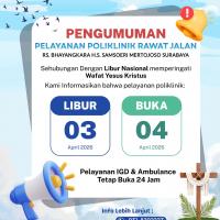 Sehubungan dengan persiapan seleksi sekolah kedinasan Polri, layanan Medical Check Up (MCU) Kedinasan Polri untuk sementara TIDAK MELAYANI.