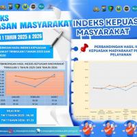 Indeks Kepuasan Masyarakat (IKM) Triwulan I Tahun 2026 mengalami peningkatan menjadi 97,23 dibandingkan tahun 2025 sebesar 96,98 📈
