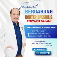 Kini telah hadir Dokter Spesialis Penyakit Dalam untuk memberikan pelayanan kesehatan terbaik bagi Anda dan keluarga.