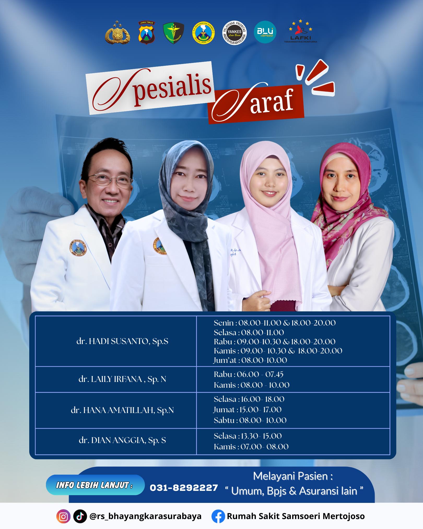 LAYANAN SPESIALIS SARAF RS. BHAYANGKARA SURABAYA BEESAMA DOKTER SPESIALIS SARAF PROFESIONAL DAN BERPENGALAMAN