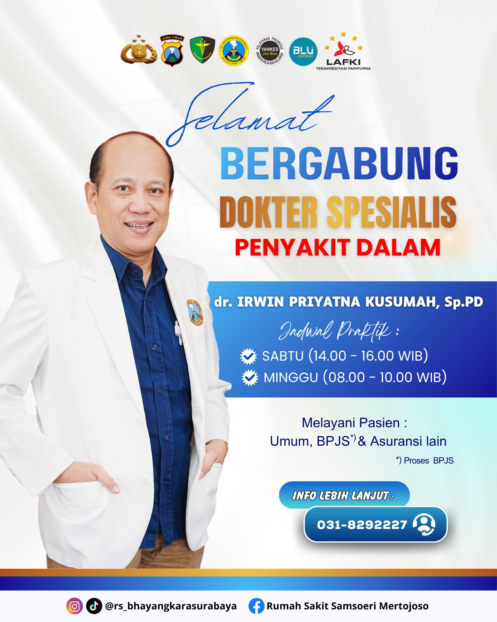 BUTUH DOKTER PENYAKIT DALAM DISAAT WEEKEND ?? YUK, BERSAMA dr. IRWIN PRIYATNA KUSUMAH, Sp.PD DI RS. BHAYANGKARA SURABAYA