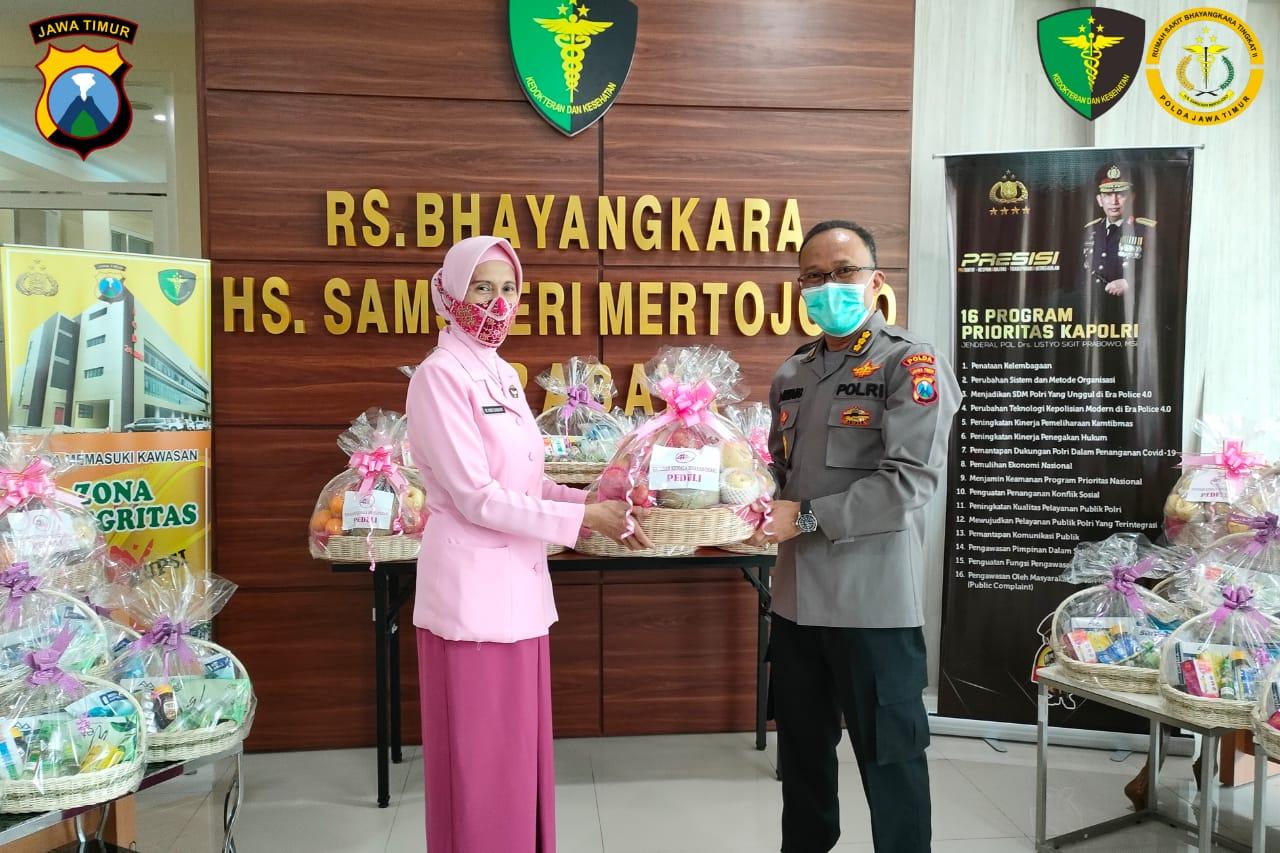 Keterangan : Penyerahan Bingkisan Baksos Pada Karumkit RS Bhayangkara Surabaya