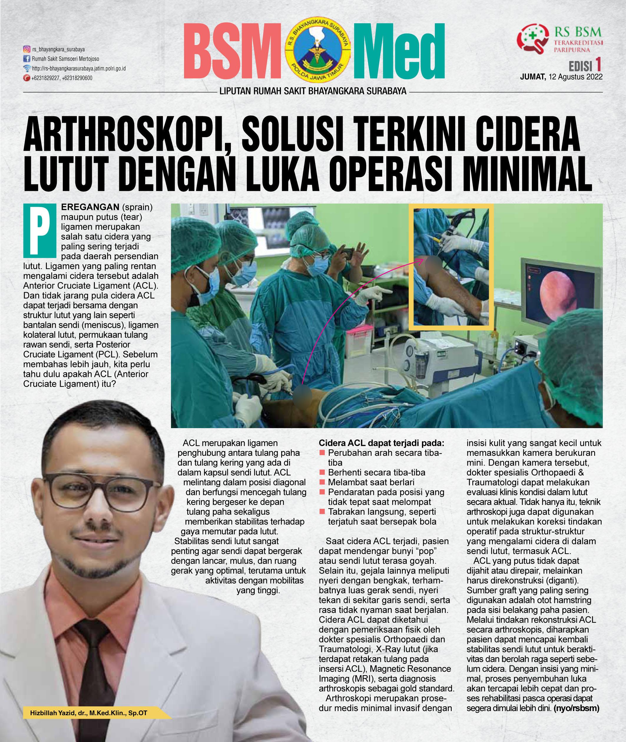 LAYANAN ARTHROSKOPI RS BHAYANGKARA H.S. SAMSOERI MERTOJOSO SURABAYA, SOLUSI CIDERA LUTUT DENGAN LUKA OPERASI MINIMAL