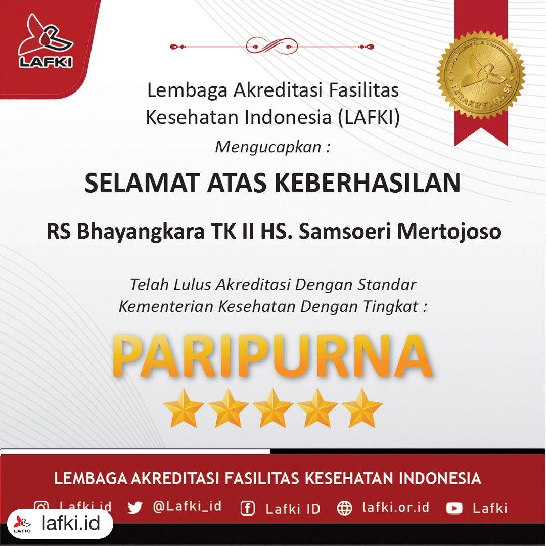 Alhamdulillah, Terimakasih atas Bimbingan Lembaga Akreditasi Fasilitas Kesehatan Indonesia kepada RS. Bhayangkara Surabaya. Serta Terimakasih atas doa baik dari seluruh Sahabat RS. Bhayangkara Surabaya sehingga RS. Bhayangkara Surabaya Telah Lulus Akreditasi Standar Kementerian Kesehatan Dengan tingkat : "PARIPURNA" âââââ